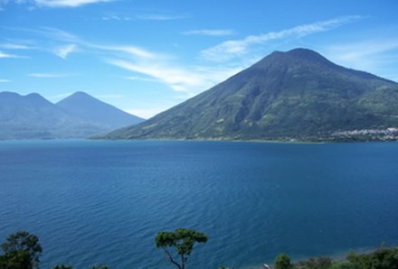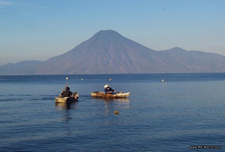 Disfrutará de una espléndida excursión en lancha sobre las aguas azules del lago. El cuadro es maravilloso con los 3 imponentes volcanes detrás. El volcán Atitlán es el más alto de los tres con 3.500 metros de altura.