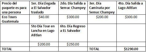 Después de desayunar en hotel, salida hacia san salvador 7:00 a.m.